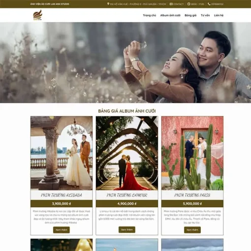 Theme wordpress dịch vụ chụp ảnh cưới, cho thuê váy cưới, studio chụp ảnh. Thiết kế đẹp mắt, chuyên nghiệp.
